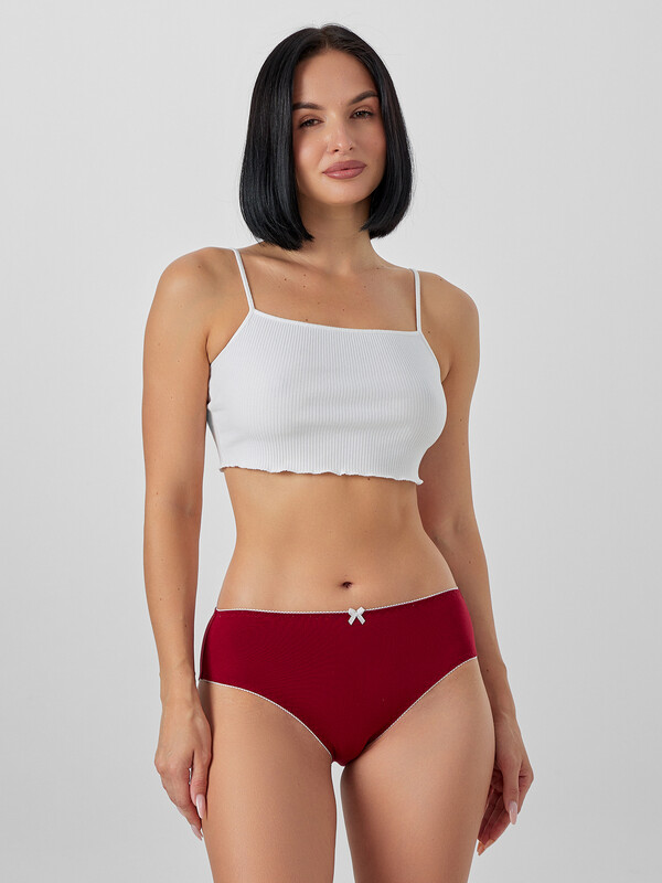 Украшением модели служит изящный декоративный элемент — бантик, расположенный по центру передней детали. Подкладка ластовицы из основного материала обеспечивает дополнительный комфорт и гигиеничность. Благодаря составу с добавлением эластана трусы сохраняют форму после стирок и мягко облегают фигуру. Эта модель станет прекрасным дополнением вашей коллекции нижнего белья, сочетая в себе практичность и нежный дизайн.