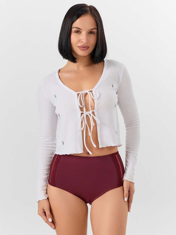 Полупрозрачные кружевные вставки по бокам добавляют трусикам игривого шарма и соблазнительности, не нарушая общей сдержанности дизайна. Эта модель особенно подойдет обладательницам пышных форм — она мягко облегает, не врезаясь и не создавая эффекта «перетяжек».