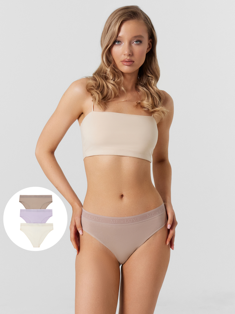 Трусы женские, силуэт слип, из трикотажного кулирного полотна, со средней посадкой. Передняя и задняя детали цельные. Подкладка ластовицы из кулирной глади отлетная по переднему срезу.