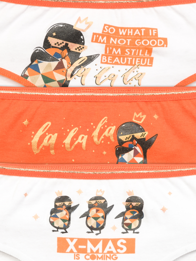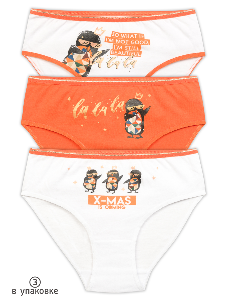 Трусы для девочек Белый/оранжевый/белый(2/31/2)