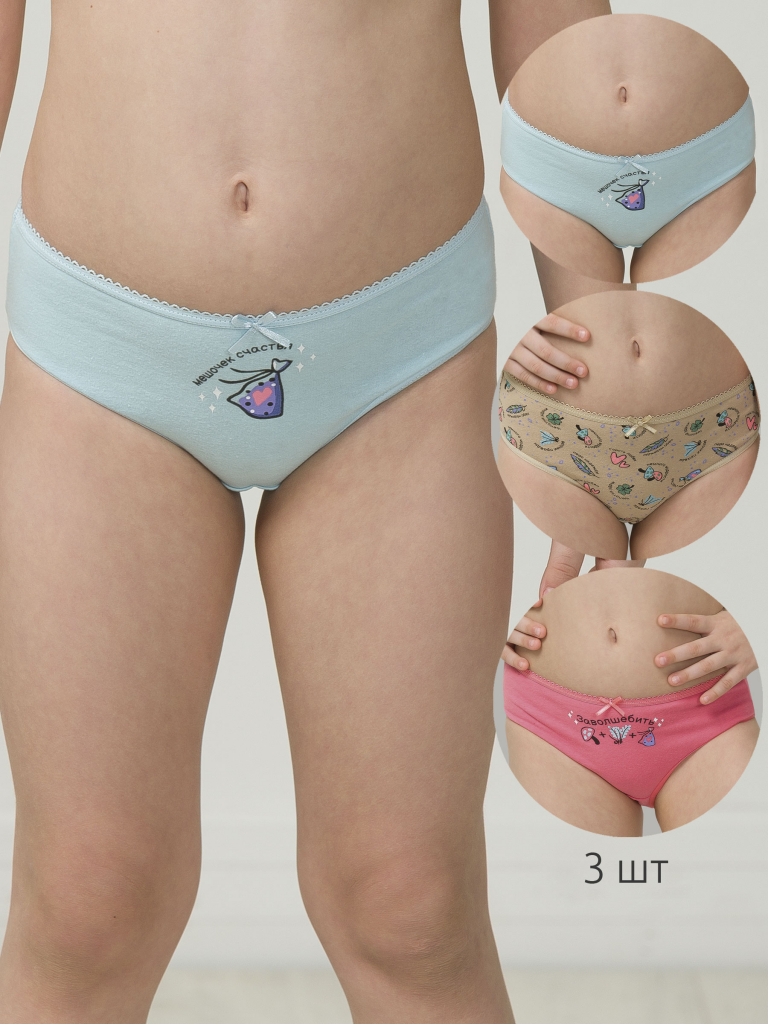 Детские трусы слипы для девочки, набор 3 штуки. Составляя детский гардероб, очень важно подобрать комфортные и удобные трусы для детей и подростков для повседневной носки на каждый день и сна. Трикотажные детские трусики слипы с эластичной резинкой по талии надежно держатся на теле ребенка, не скручиваются, не закатываются и не сползают, а дышащая ткань позволяет избежать натирания нежной кожи. Добавление эластана делает трикотажные трусы эластичными и более удобными при надевании. Плотная, но свободная модель и средняя посадка не сковывают движения девочки, что важно маленьким детям. Милое и практичное детское нижнее белье порадует родителей долговечностью – хлопковые повседневные трусы не боятся многочисленных стирок, не растянутся и не полиняют. Детская одежда для девочек должна отвечать моде, комплект представляет только молодежные цвета, которые порадуют и поднимут настроение современной модницы.