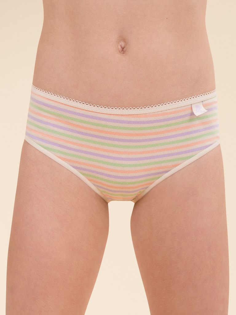 При выборе белья для своего ребёнка каждая мама хочет быть уверена в его качестве и в том, что ребёнку будет комфортно. Комплект трусов для девочки (3 шт.) полностью соответствует этим требованиям. Слипы средней посадки выполнены из ткани с высоким содержанием хлопка — модель мягкая, прекрасно пропускает воздух, давая коже ребёнка дышать. Благодаря эластану в составе изделие надолго сохраняет отличную форму, даже после многочисленных стирок. Качественная ткань и анатомически правильный крой обеспечивают идеальную посадку на теле — ребёнку комфортно на протяжении всего дня. Мягкая резинка исключает раздражение и трение. Трусы детские для девочки представлены в трёх актуальных вариантах расцветки: сиреневый (трендовый оттенок лаванды), розовый и в полоску пастельных оттенков. Нежные и по-настоящему красивые, эти цвета напоминают пирожные "макарон" и обязательно придутся по душе любой девочке. Слипы лаконичного дизайна, дополнены небольшими нашивками с лого на поясе. В линейке представлены хлопковые трусы следующих размеров: 2 (92): 3 (98): 4 (104): 5 (110): 6 (116): 7 (122): 8 (128): 9 (134): 10 (140): 11 (146). Модель подходит девочкам дошкольного возраста, девочкам младшего школьного возраста и девочкам-подросткам. Трусы слипы для девочки — идеальный выбор детского белья для повседневной носки. Модные трусы станут хорошим подарком дочери или внучке на любой праздник. Выбирайте нужный размер по таблице размеров на фото. Цвет товара на экране вашего устройства может отличаться от цвета изделия вживую. Товар возврату и обмену не подлежит.