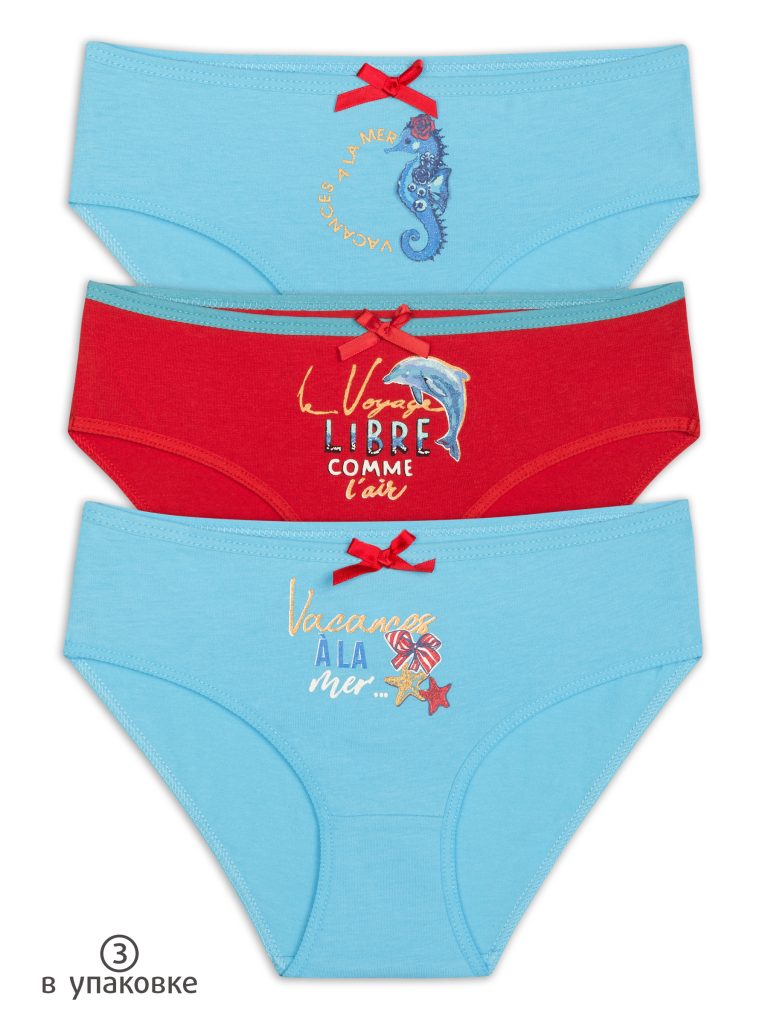 Трусы для девочек Лазурный/коралловый/лазурный(21/16/21)