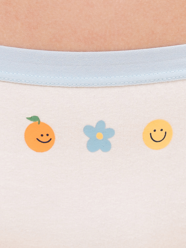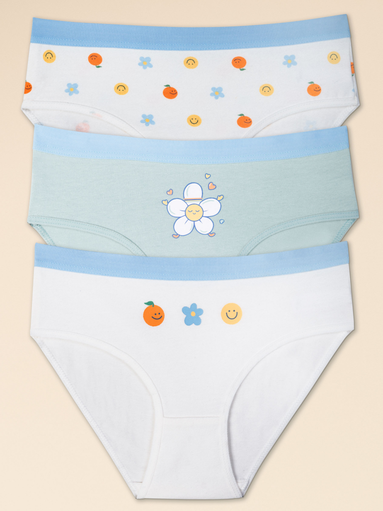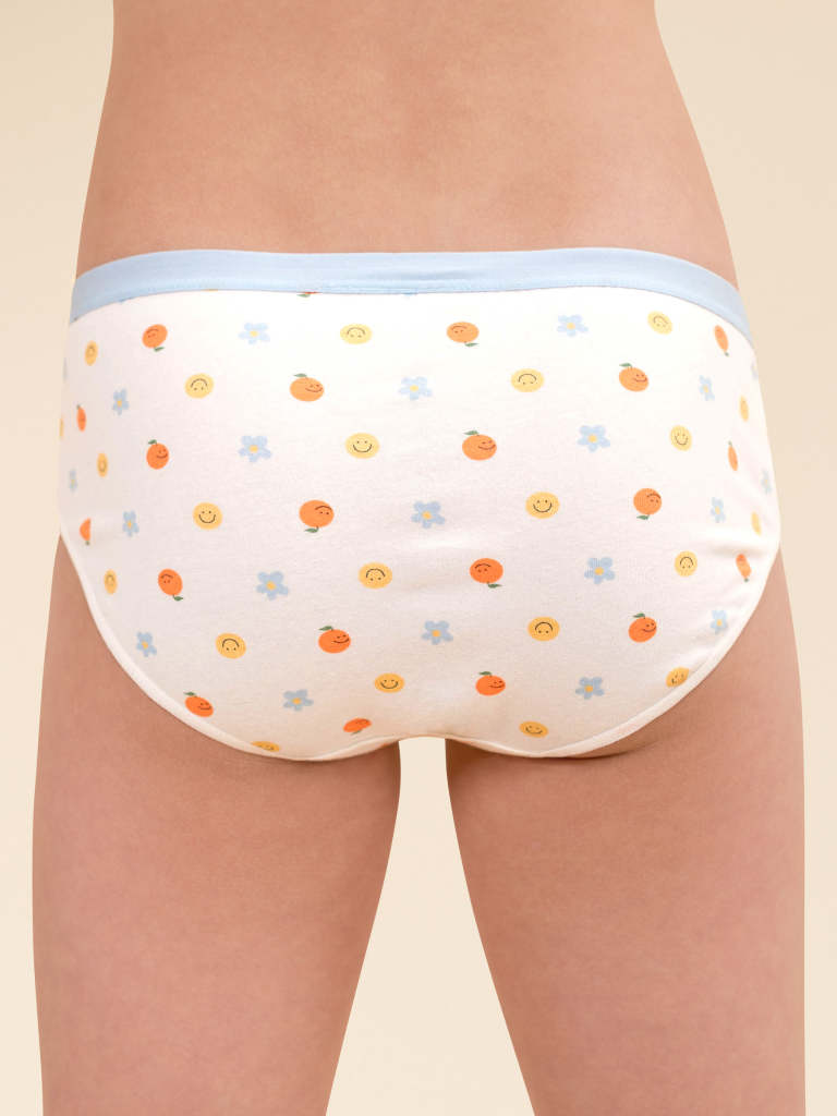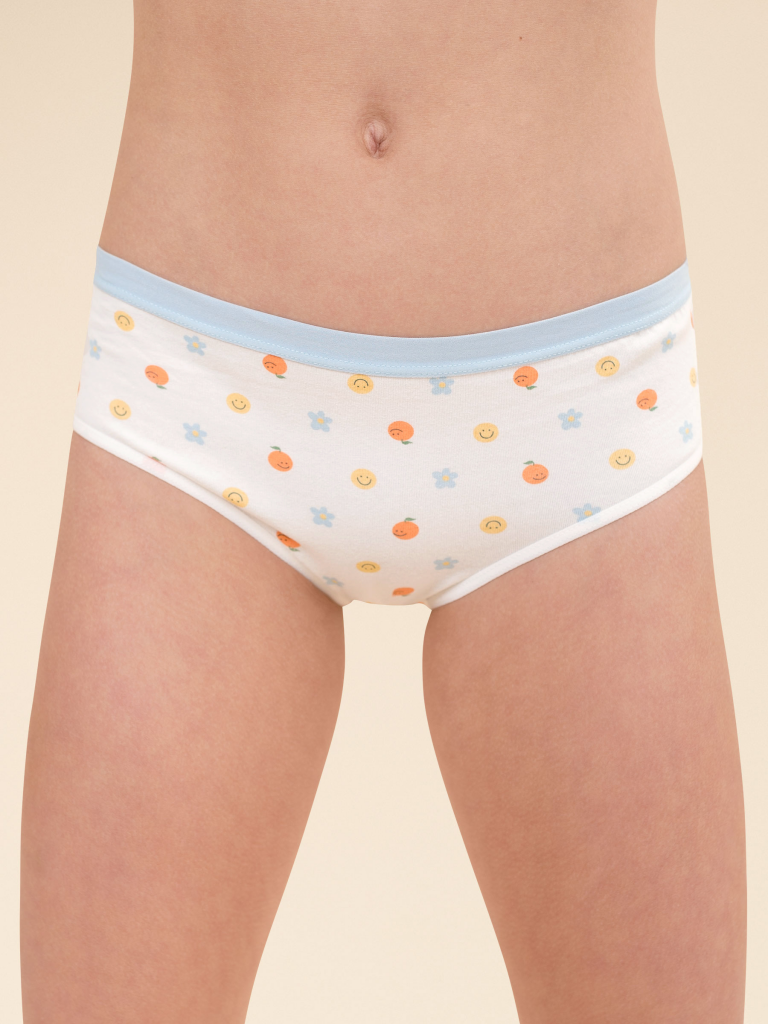 При выборе белья для своего ребёнка каждая мама хочет быть уверена в его качестве и в том, что ребёнку будет комфортно. Комплект трусов для девочки (3 шт.) полностью соответствует этим требованиям. Слипы средней посадки выполнены из ткани с высоким содержанием хлопка — модель мягкая, прекрасно пропускает воздух, давая коже ребёнка дышать. Благодаря эластану в составе изделие надолго сохраняет отличную форму, даже после многочисленных стирок. Качественная ткань и анатомически правильный крой обеспечивают идеальную посадку на теле — ребёнку комфортно на протяжении всего дня. Мягкая резинка исключает раздражение и трение. Трусы детские для девочки представлены в трёх актуальных вариантах расцветки: белые со сплошным принтом в виде цветочков, смайликов и улыбающихся мандаринов, зелёные с принтом в виде улыбающейся ромашки и белые с небольшим принтом в виде улыбающегося мандарина, цветочка и смайлика. Принты эластичные и стойкие, отлично переносят частые стирки. В линейке представлены хлопковые трусы следующих размеров: 1 (86): 2 (92): 3 (98): 4 (104): 5 (110): 6 (116): 7 (122): 8 (128): 9 (134): 10 (140): 11 (146). Модель подходит девочкам дошкольного возраста, девочкам младшего школьного возраста и девочкам-подросткам. Трусы слипы для девочки — идеальный выбор детского белья для повседневной носки. Модные трусы станут хорошим подарком дочери или внучке на любой праздник. Выбирайте нужный размер по таблице размеров на фото. Цвет товара на экране вашего устройства может отличаться от цвета изделия вживую. Товар возврату и обмену не подлежит.
