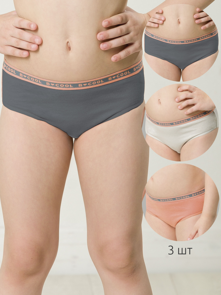 Трусы для девочек Светло-серый/персиковый/изумрудный(53/33/14)