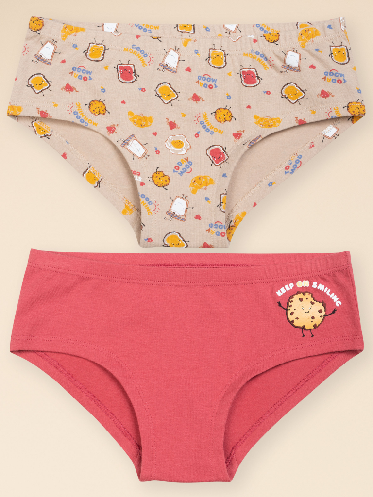 Выбирая бельё для своего ребёнка, любая мама заботится о его качестве и о том, чтобы ребёнку было удобно. Комплект (2 шт.) трусов для девочки полностью соответствует этим запросам. Шорты выполнены из ткани с высоким содержание хлопка, что обеспечивает им мягкость и безупречную воздухопроницаемость. Кожа ребёнка свободно дышит. Благодаря эластану в составе ткани изделие в течение длительного времени сохраняет первозданную форму. Качественный материал и грамотный крой обеспечивают идеальную посадку белья — ребёнку комфортно и днём, и ночью. Мягкая резинка исключает раздражение и трение. Шортики представлены в двух трендовых оттенках: карминный розовый и "овсяное молоко". Терракотовый и бежевый - очень уютные и по-настоящему красивые цвета — понравятся любой девочке. Трусы украшены милыми принтами в стиле "хюгге" с позитивным настроением. Перевод: "Продолжай улыбаться". Принты мягкие и долговечные, прекрасно переносят частые стирки. Модель идеальна для повседневной носки, отдыха, спорта. То, что нужно для вашег