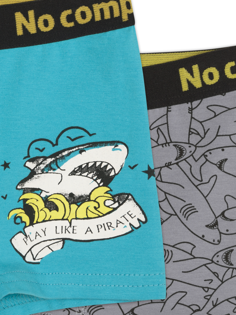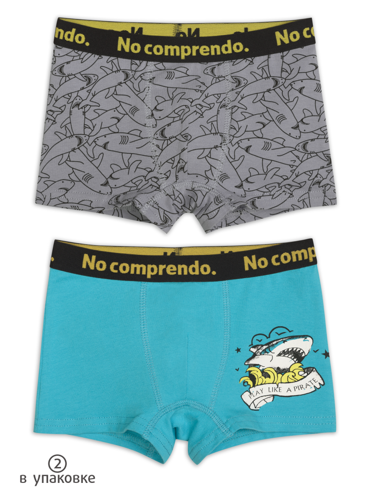 Трусы шорты для мальчиков. В комплекте 2 изделия. По талии тканый эластик с вытканным вкруг текстовым принтом. Прочный принт на морскую тематику.
