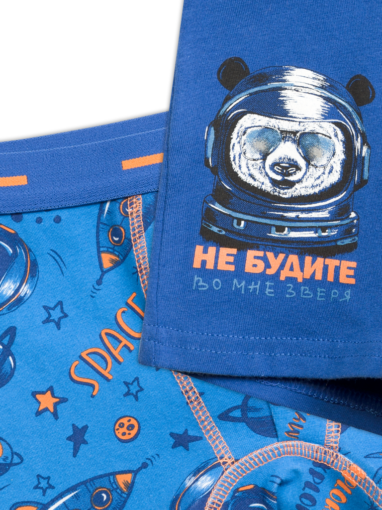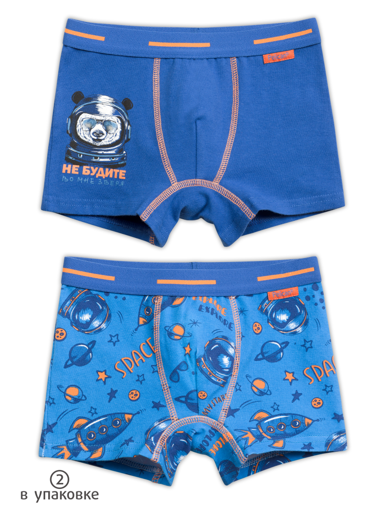 Трусы шорты для мальчиков. В комплекте 2 изделия. По талии широкий тканый эластик с вытканными полосками. Декоративная отстрочка в области гульфика.