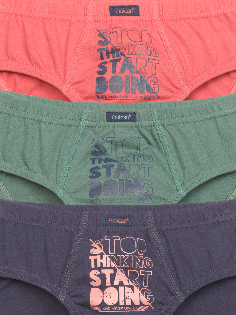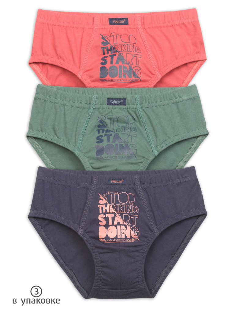 Трусы слипы для мальчиков. В комплекте 3 изделия. Декоративная обработка в области гульфика. Прочный принт. Перевод Хватит думать, начинай делать.
