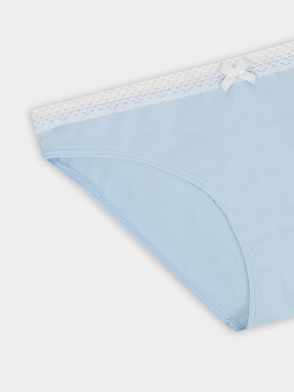 Трусы для девочек сочетают нежность и комфорт для повседневной носки. Модель с цельнокроеными деталями переда и спинки исключает боковые швы, что предотвращает натирание и обеспечивает гладкое прилегание. Кружевная отделка шириной по верхнему срезу добавляют элегантность, а эластичная тканая жилка по нижнему краю гарантирует аккуратную посадку без деформации.
