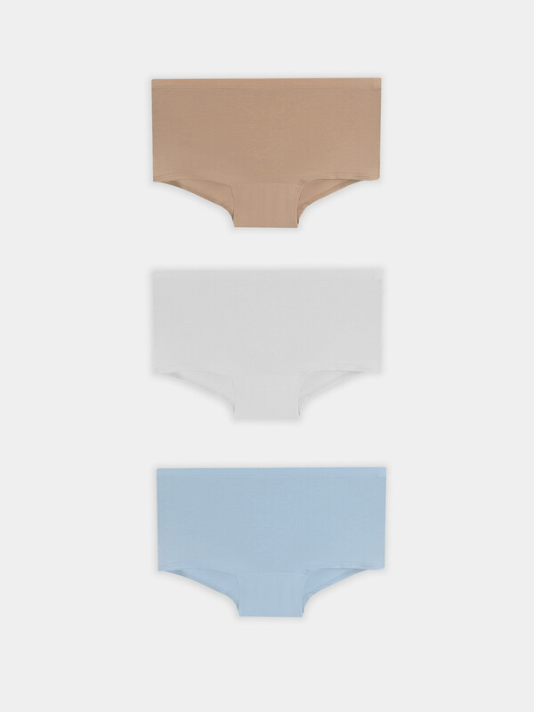 Трусы для девочек «шорты-боксеры» изготовлены из двух половинок с притачной ластовицей. Верхний срез трусов обработан швом в подгибку на 2х игольной плоскошовной машине с внутренней эластичной тесьмой 20мм, 20RV. Нижние срезы трусов обработаны на 2х игольной плоскошовной машине.