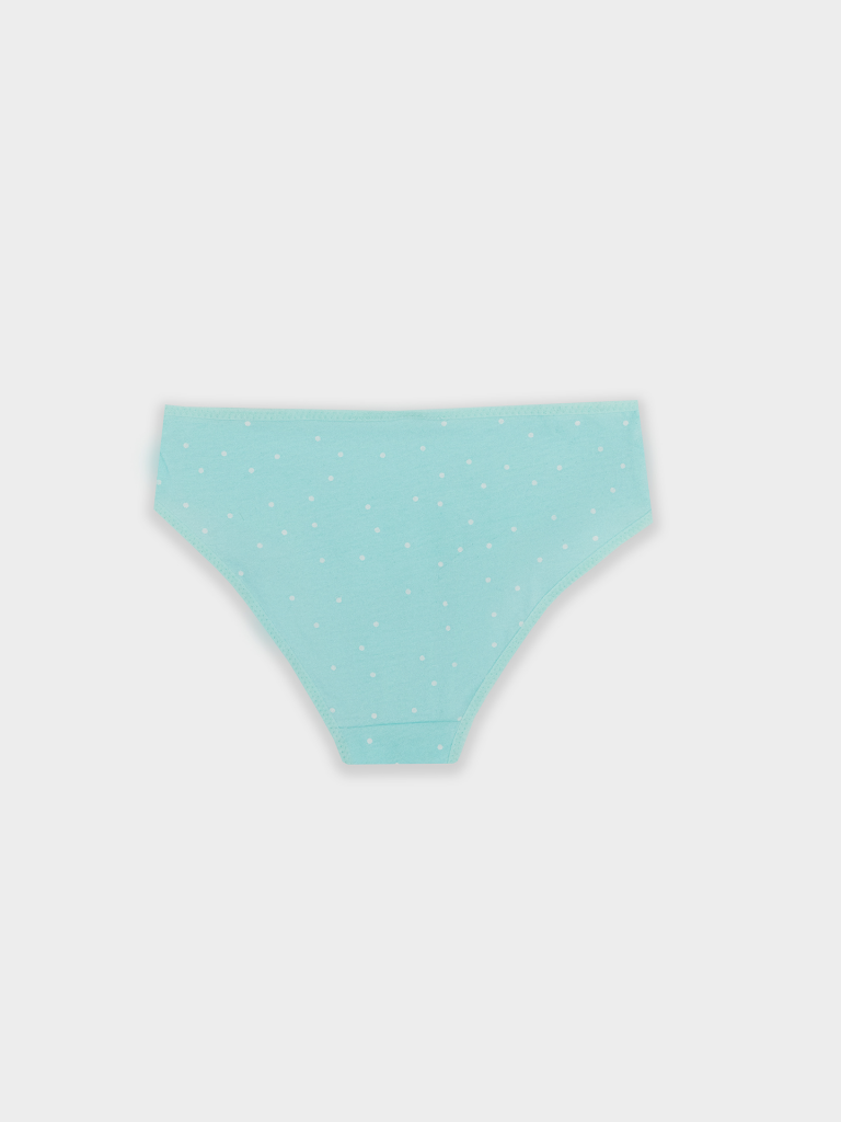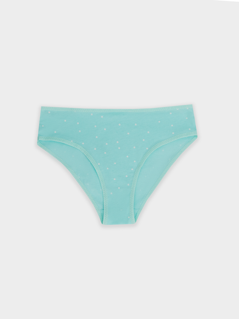 Трусы для девочек. Ластовица из трикотажного кулирного полотна. Задняя деталь цельнокроенная. Верхний и нижние срезы трусов окантованы лаваблем.