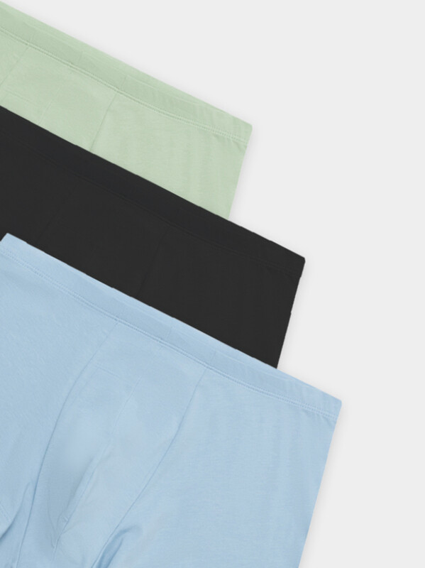 Набор трусов мужских в количестве 3 штук изготовлен из трикотажного полотна кулирного переплетения. Прилегающие, без боковых швов. Планка с средним швом. Шаговый шов выполнен строчкой "флэт-лок". Верхний край трусов застрочен с эластичной тесьмой на плоскошовной машине.