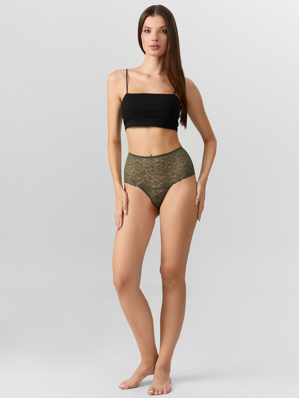 Изысканные женские трусики-бразилиана с высокой посадкой — идеальный выбор для тех, кто ценит элегантность и комфорт. Выполненные из эластичного кружева, они прекрасно облегают фигуру. Подкладка ластовицы из кулирного полотна обеспечивает дополнительное удобство, а верхний срез, обработанный эластичной тесьмой, гарантирует надежную посадку. Дополните комплект подходящим верхом из той же коллекции, чтобы создать эффектный и гармоничный образ. Превосходный вариант для подарка себе или близким.