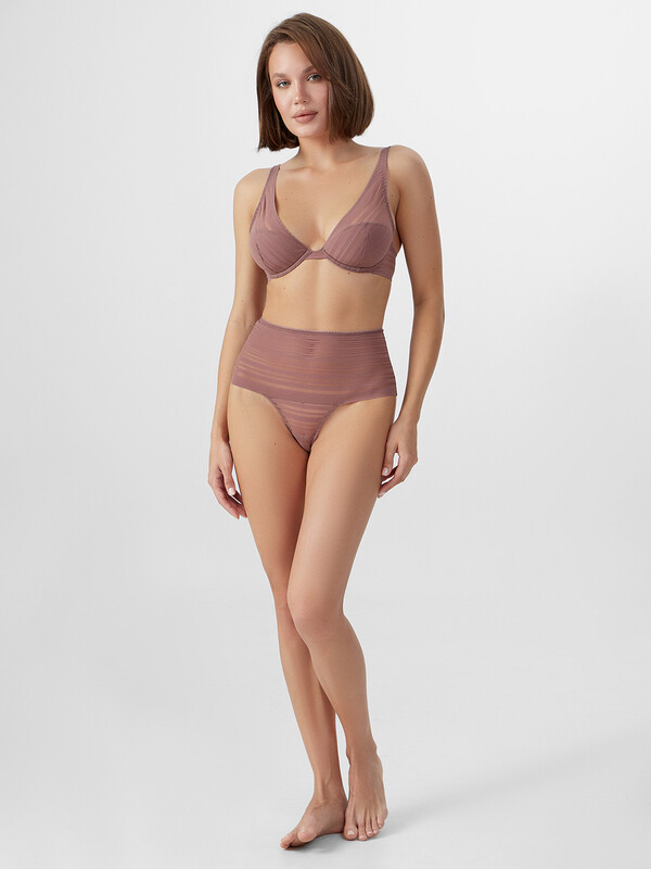 Изысканные женские трусики-бразилиана с высокой посадкой — это воплощение утонченности и комфорта в одном изделии. Модель выполнена из нежного эластичного кружева, которое не только красиво смотрится, но и мягко облегает фигуру, подчёркивая её линии. Ластовица с подкладкой из кулирного полотна обеспечивает деликатную защиту и комфорт в течение всего дня. Верхний срез обработан эластичной тесьмой, благодаря чему трусики надёжно фиксируются на талии, не создавая дискомфорта. Этот вариант идеально подойдет как для повседневной носки, так и для особых случаев. В сочетании с подходящим верхом из той же коллекции образ становится завершенным и по-настоящему эффектным. Отличный выбор для тех, кто хочет порадовать себя или сделать утонченный подарок.