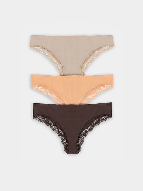 Трусы женские, средняя линия талии, силуэт бразилиана, из кулирного полотна. Передняя деталь цельная. Подкладка ластовицы выполнена из основного полотна, отлетная по переднему срезу. Задняя деталь со ссредним швом , собранном на ширителе.