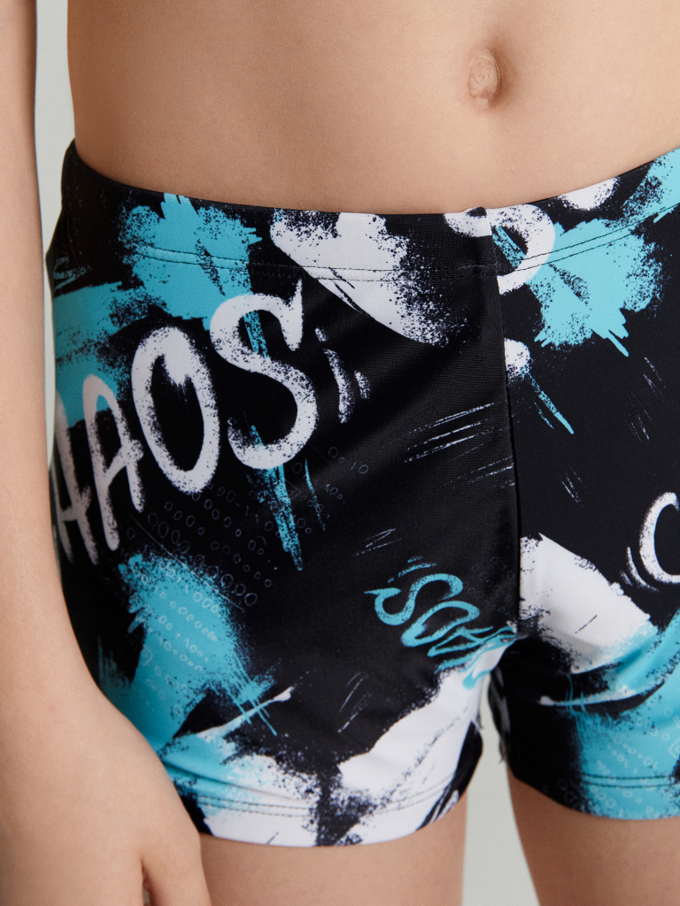 Трусы купальные граффити на черном