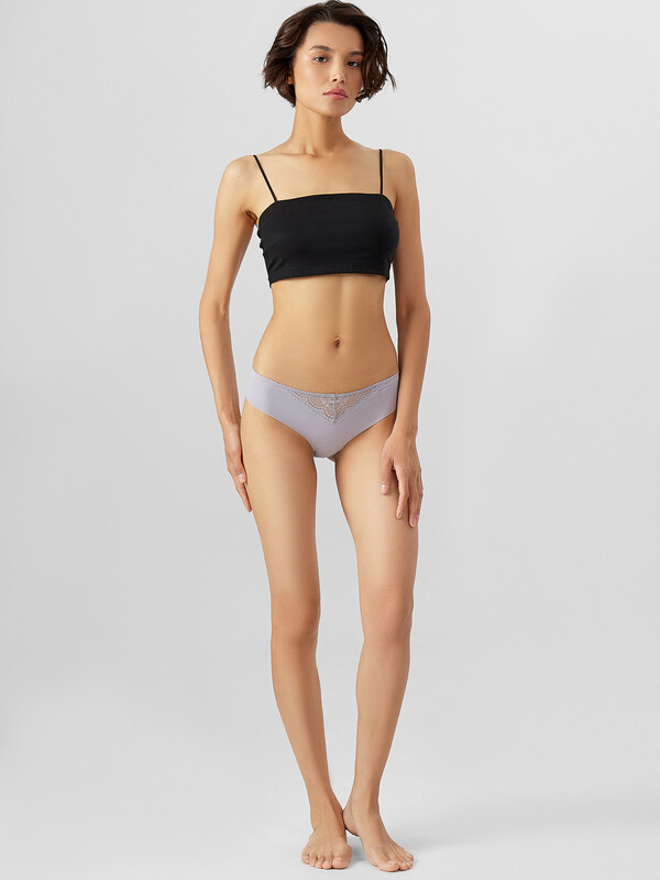 Передняя деталь с вставкой из эластичного кружева. Подкладка ластовицы из основного полотна, по переднему среду ластовица отлетная. По боковым сторонам насточена переднюю деталь. Задний шов ластовицы обработан на застиле. Талия обработана в два приёма, жилкой 6 мм (жилка WT4-6, девсель 13460W). Спинка цельнокроёная