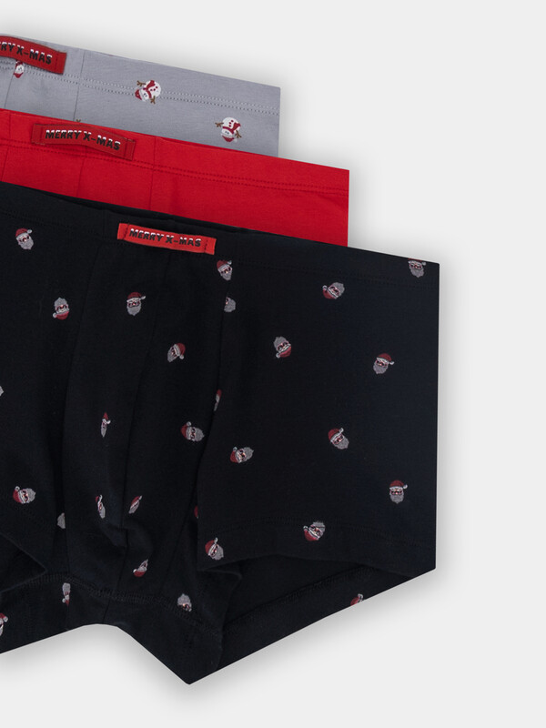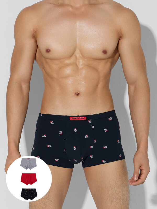 Трусы мелкая набивка на черном +красный +снеговики на сером