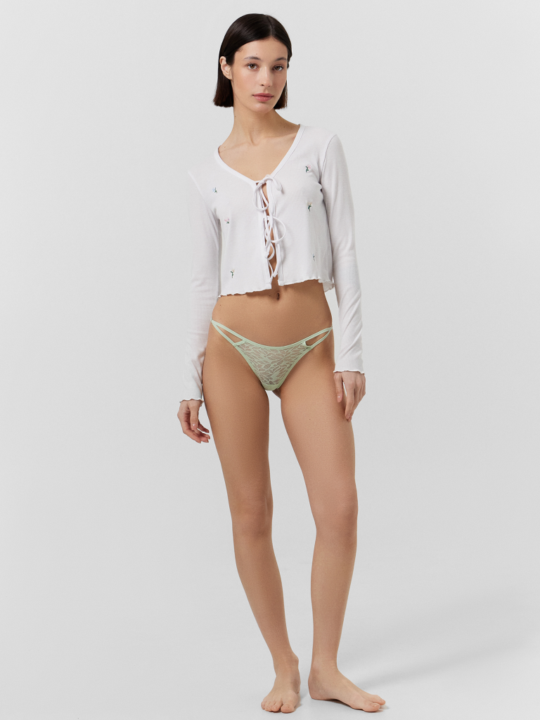 Очаровательные кружевные трусики бразилиано — это сочетание утонченности и комфорта, которое подчеркнет вашу красоту! Модель со средней посадкой обеспечивает идеальную посадку и комфортное прилегание, адаптируясь к форме тела. Выполненные из эластичного кружевного материала, трусики дарят коже нежное прикосновение, одновременно создавая стильный и изысканный образ. Ластовица из кулирной глади добавляет изделию дополнительное удобство, обеспечивая мягкость и воздухопроницаемость в течение дня. Особенным акцентом являются декоративные колечки по бокам, которые придают модели уникальность и изящный шарм. Эти трусики станут великолепным выбором для тех, кто хочет внести нотку утонченности в свой гардероб, не забывая о комфорте. Рекомендуем!