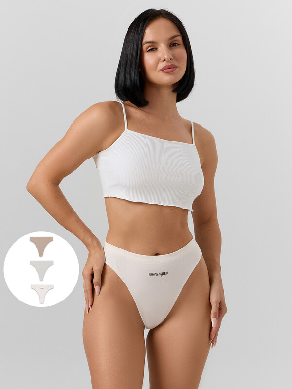 Набор из трех женских трусов-бразилиана — это элегантный и комфортный вариант для повседневной носки. Модель с высокой линией талии и высокими ножками создает соблазнительный силуэт, подчеркивая изгибы фигуры.