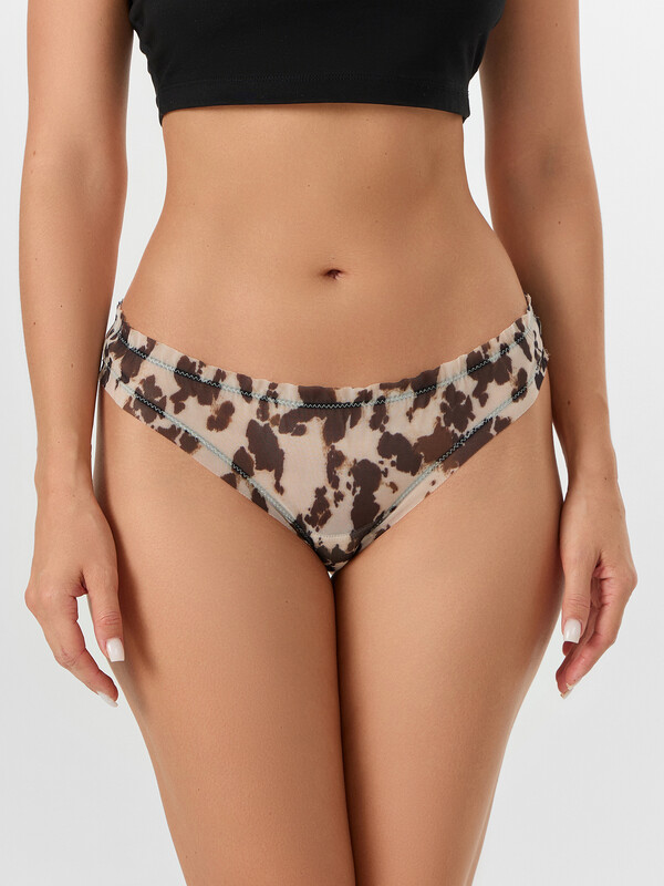 Очаровательные женские трусики бразилиана для повседневной носки и особых случаев, выполненные из эластичного сетчатого материала с набивным рисунком. За счет тонкого и невесомого материала практически не чувствуются на теле. Трусики не выделяются, а это значит, что их можно с удовольствием носить с обтягивающей одеждой. Линия талии средняя. Модель с интригующей рюшей и сборками по ножкам. Красивые, стильные и удобные, лучший вариант для тех, кто устал от обычных классических женских трусиков. Размерный ряд широкий, красивые базовые цвета и модели с принтами - никого не оставят равнодушными. Милый дизайн радует глаз, дополнить такие трусики легко шикарным верхом из линейки нижнего женского белья. Порадуйте себя и близких красивым женским бельем на праздники и просто без повода!