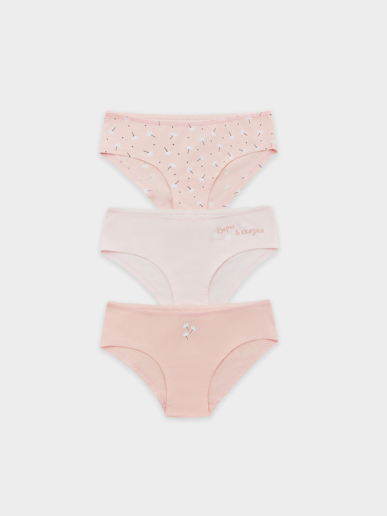 Мультипак (3 шт.) милых трусиков из высококачественного хлопкового трикотажа. Верхний срез обработан эластичной тесьмой, нижние срезы подогнуты. Отличный выбор!