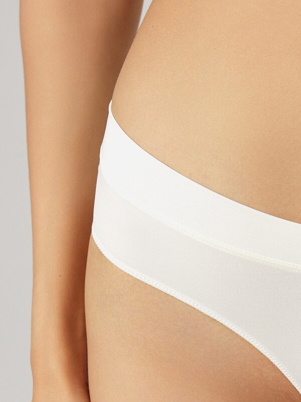Женские трусы силуэта «бразилиана» со средней посадкой выполнены из мягкой и гладкой микрофибры, которая обеспечивает комфорт и легкость в носке. Ластовица из кулирной глади добавляет гигиеничности и приятные тактильные ощущения. Задняя деталь украшена сборкой по центру в верхней части, что придает модели изящный акцент и подчеркивает форму. Нижние срезы обработаны эластичной тесьмой, благодаря чему изделие надежно фиксируется, не создавая дискомфорта и оставаясь незаметным под одеждой. Такой вариант идеально подойдет для тех, кто ценит сочетание удобства и утонченного дизайна.