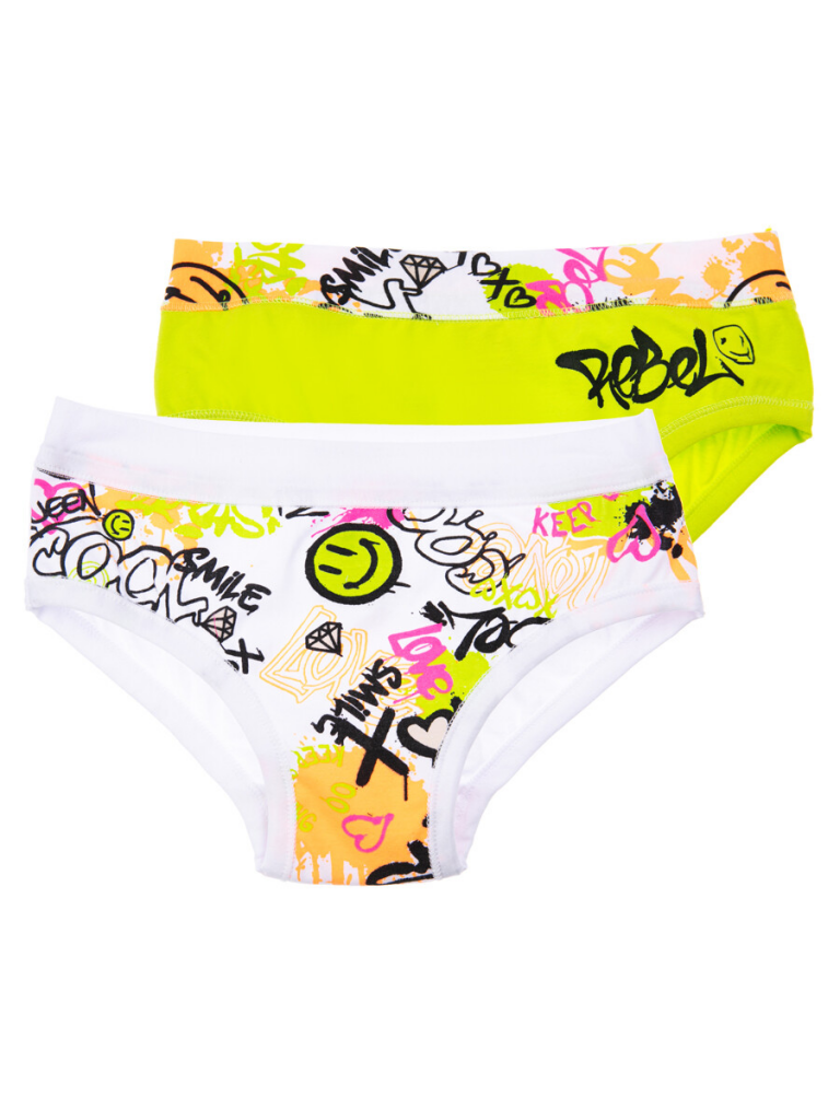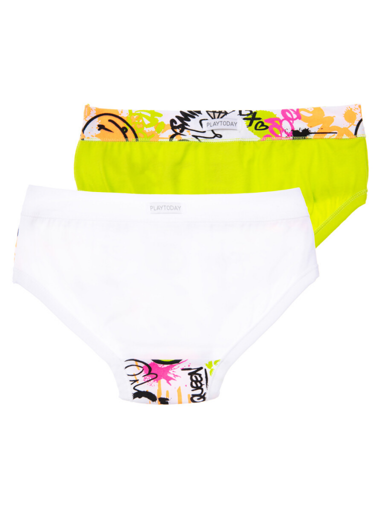 Сет из трикотажных трусов-слипов для девочек. 2 штуки в комплекте. По талии широкий пояс из основной ткани. Высокое содержание хлопка 93%.