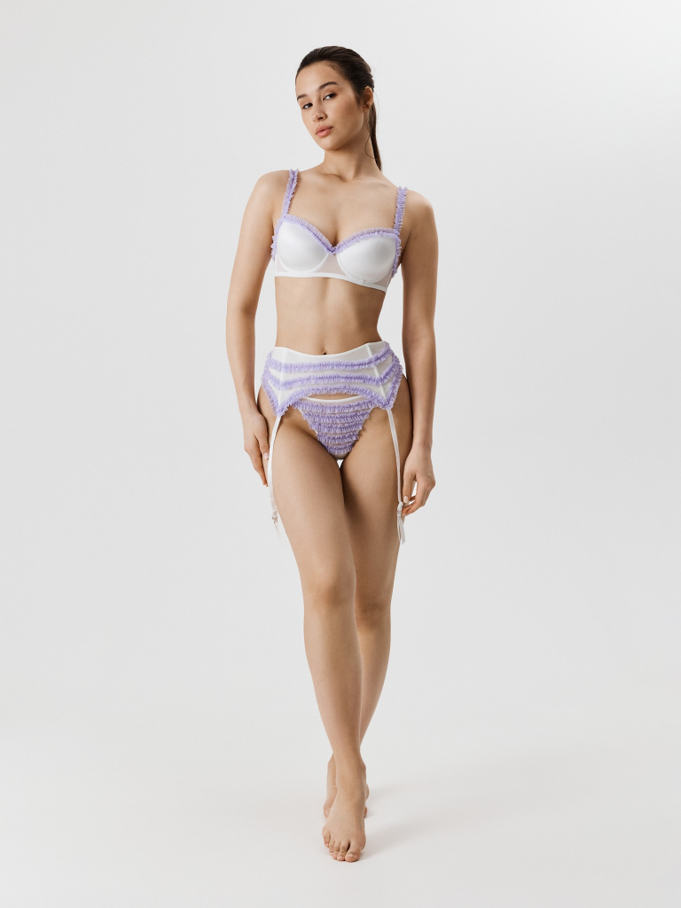 Трусы стринги-бразилиано с поясом для чулок Apasta белый