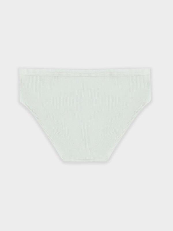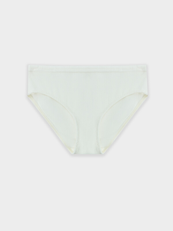Деталь переда цельнокроеная. Ластовица из трикотажного кулирного полотна SJ-001.01.140, 100% хлопок, 140гр, 175см. Задняя деталь цельнокроенная. Верхний срез трусов обработан окантовкой из основного полотна с эластичной тканой жилкой внутри, WT4-10. Нижние срезы трусов обработаны тканой жилкой 6 мм, WT4-6
