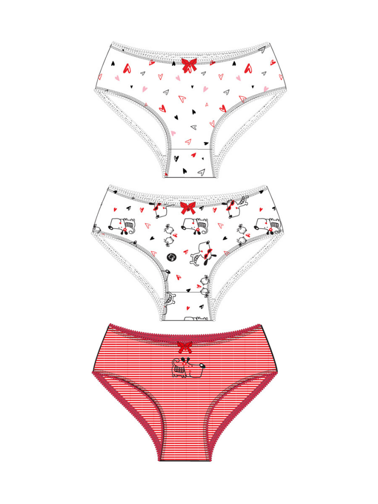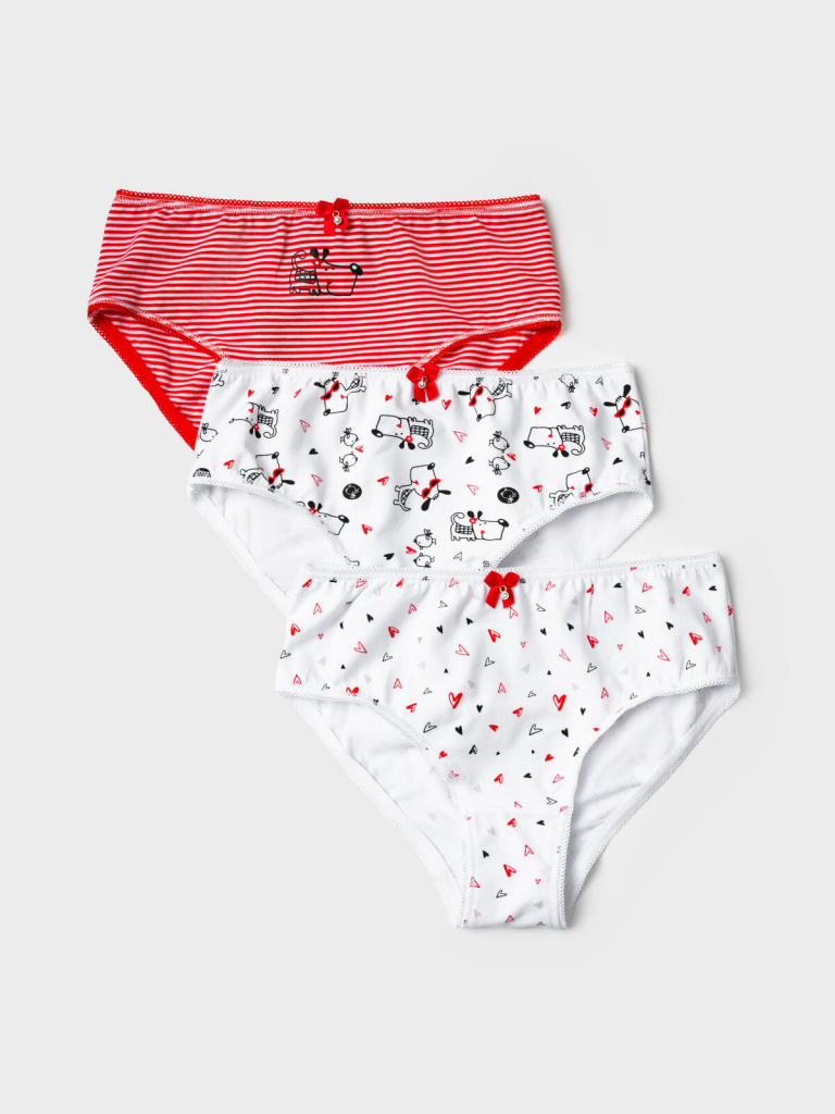 Трусы трикотажные для девочек, 3 шт в комплекте красный,белый