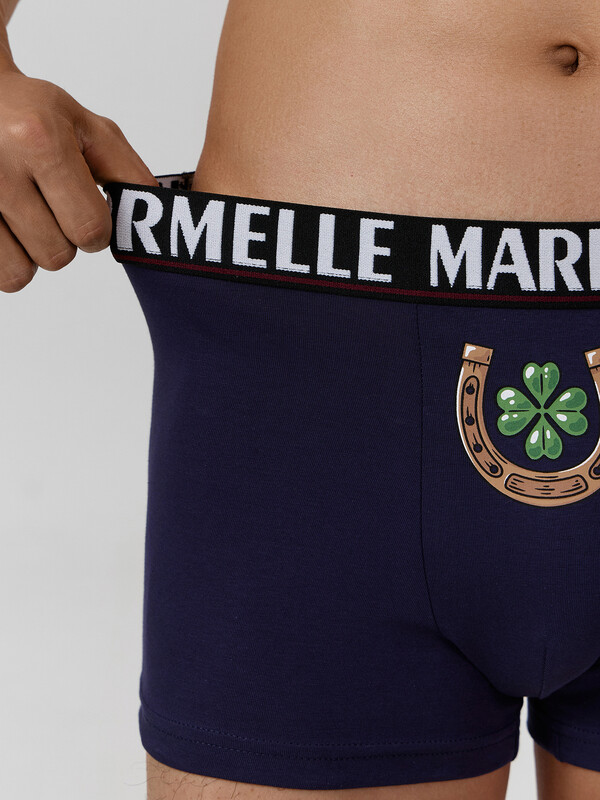Прилегающие, без боковых швов. Планка с вытачкой. Задний шов ластовицы обработан строчкой «флэт-лок». По верхнему срезу настрочена фирменная жаккардовая эластичная тесьма (30 мм или 35 мм, по заданию) на 3-хигольной плоскошовной машине. Боковой срез тесьмы стачен строчкой «флэт-лок». Нижние срезы застрочены швом вподгику на плоскошовной машине.