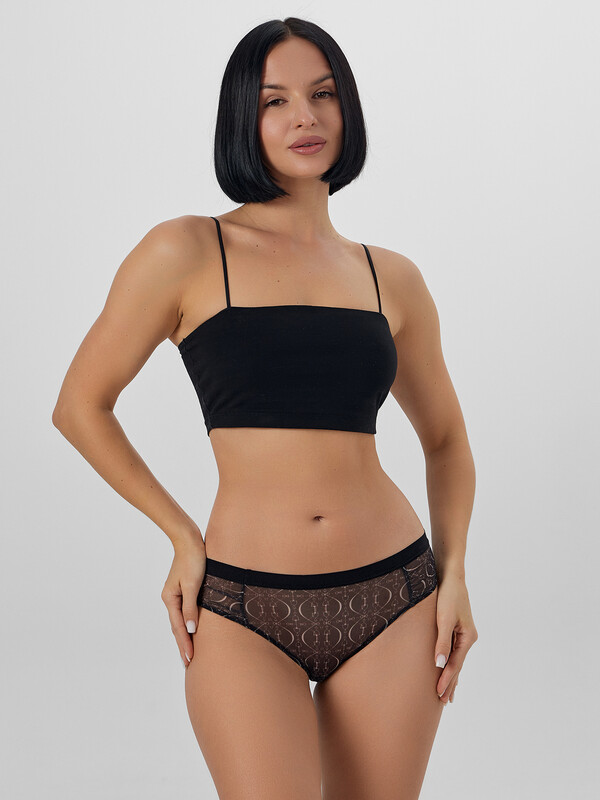 Трусы женские со средней посадкой классического силуэта. Передняя деталь с рельефами, выполнена из эластичной сетки. Ценральная деталь собрана на сборку из рельефов. и на подкладке из сетки. Ластовица отрезная, подкладка ластовицы из кулирного полотна.