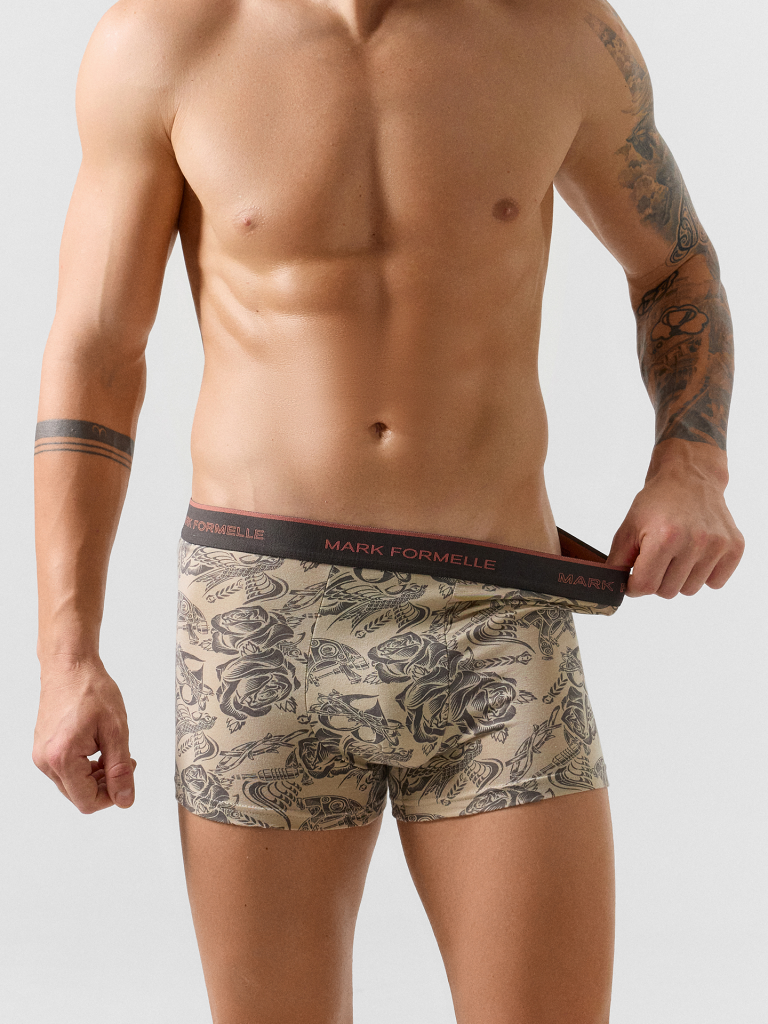 Трусы зелено -голубой +тату на бежевом