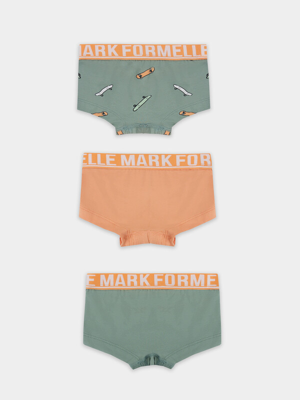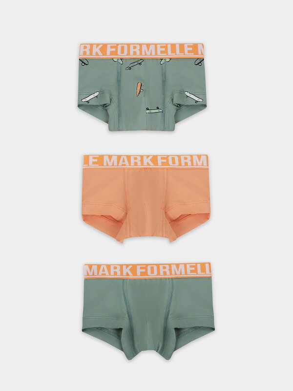 Деталь переда и сидения цельнокроенные. По верхнему срезу трусов настрочена эластичная тесьма (жаккард) шириной 25 мм. Боковые швы гульфика и шаговый шов выполнены строчкой "флэт-лок". Нижние срезы трусов застрочены швом в подгибку.