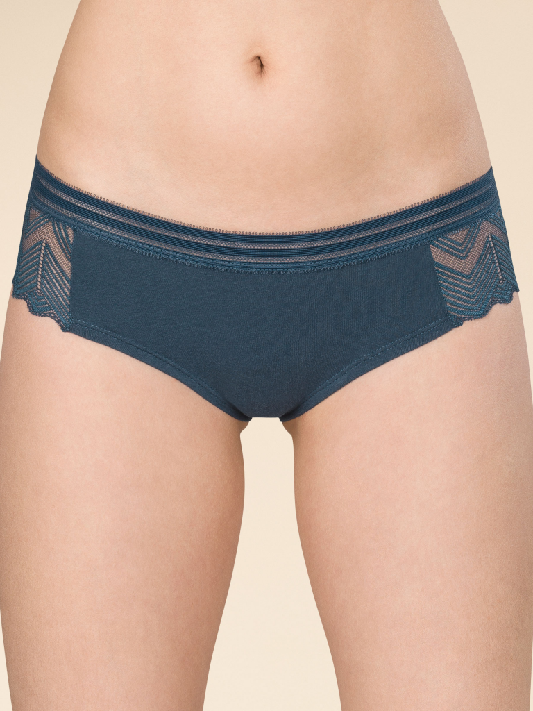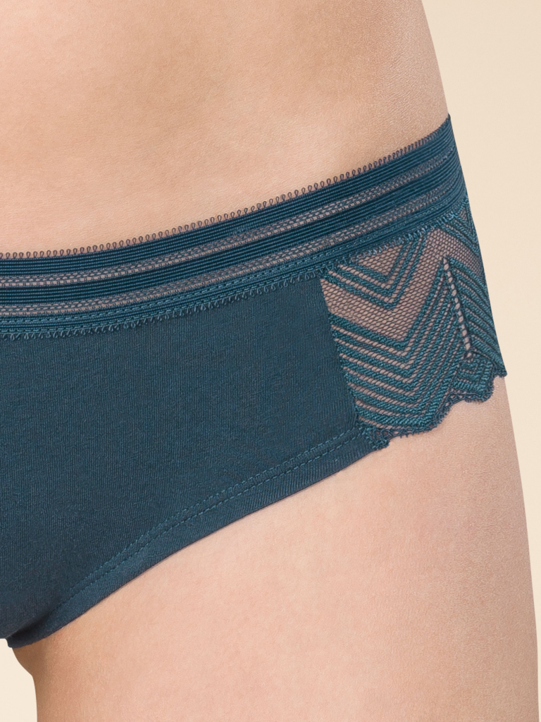 Женские трусы-шорты с низкой посадкой для влюбленных в красивый и активный образ жизни. Ткань с высоким содержанием хлопка и небольшим содержанием эластана. По линии талии мягкий принтованный эластик - не передавливает тело, не натирает кожу. Обработка по ноге двухниткой – шов не деформируется. Нежное геометричное кружево отражает тренд на умный дизайн.