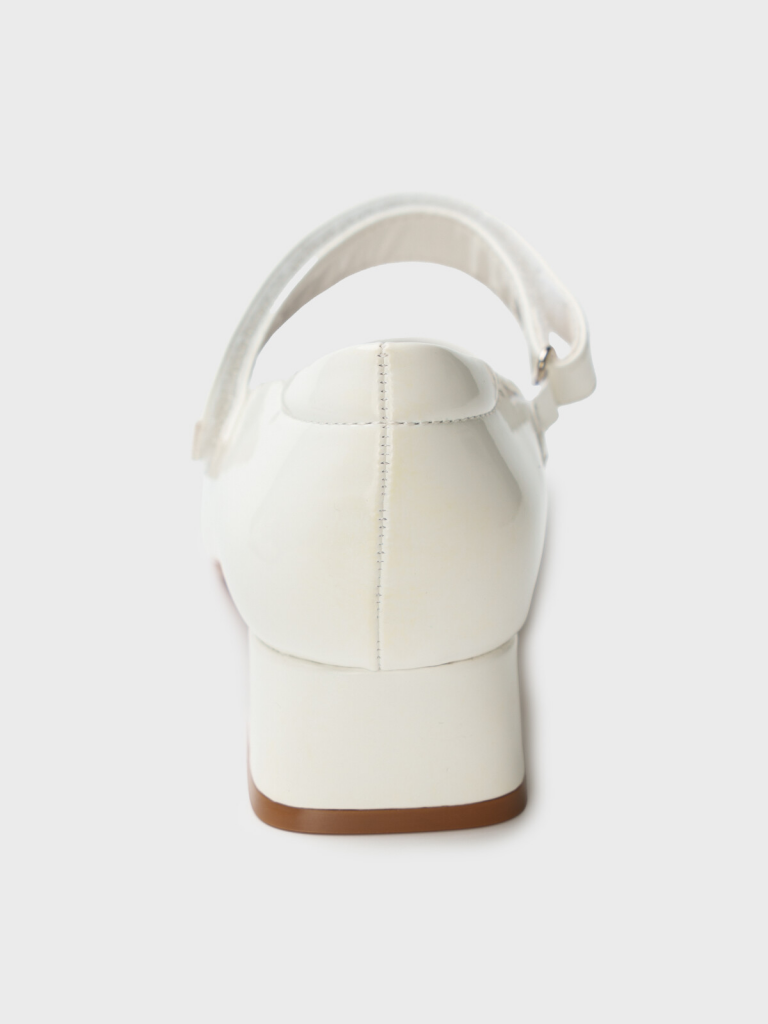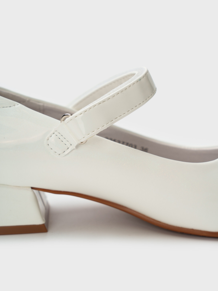 Школьные туфли на каблуке для девочки подростка. Туфли выполнены из искусственной лаковой кожи. Возвратный чересподъемный ремень на липучке дает возможность регулировать обувь на любой подъем. Подкладка выполнена из 100% натуральная кожа. Кожаная стелька с анатомическим элементом обеспечивает правильную нагрузку на стопу. Высота каблука 3 см - очень комфортная для повседневной носки. Формоустойчивый задник поддерживает стопу в правильном положении. Подошва легкая и гибкая. Белые лаковые туфли для девочки школьницы отлично подойдут как сменка в школу, на 1 сентября, для праздника, а также для прогулок: весна, лето, ранняя осень.
