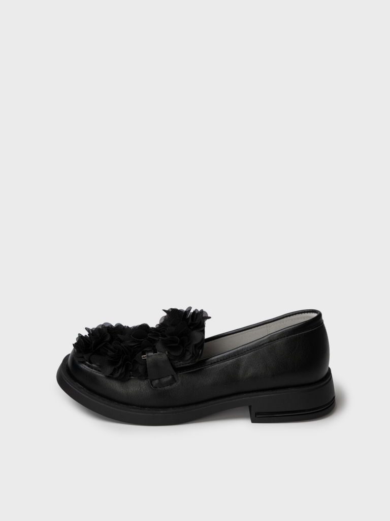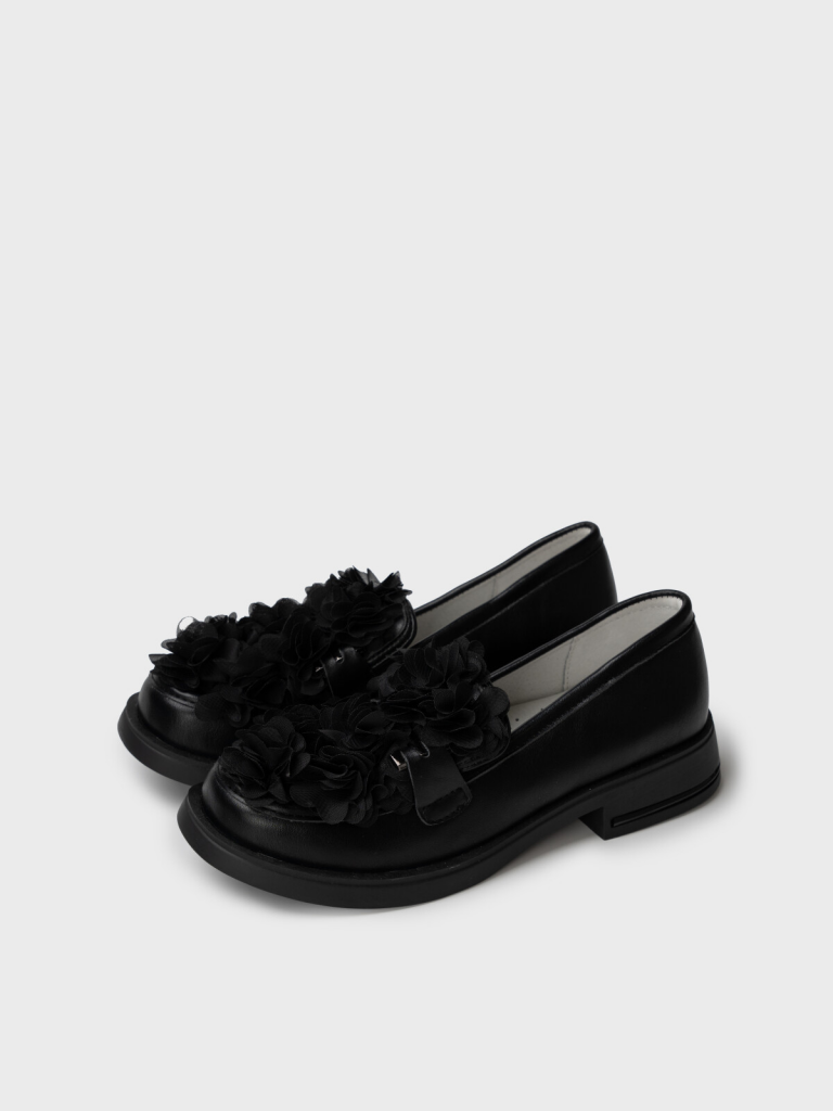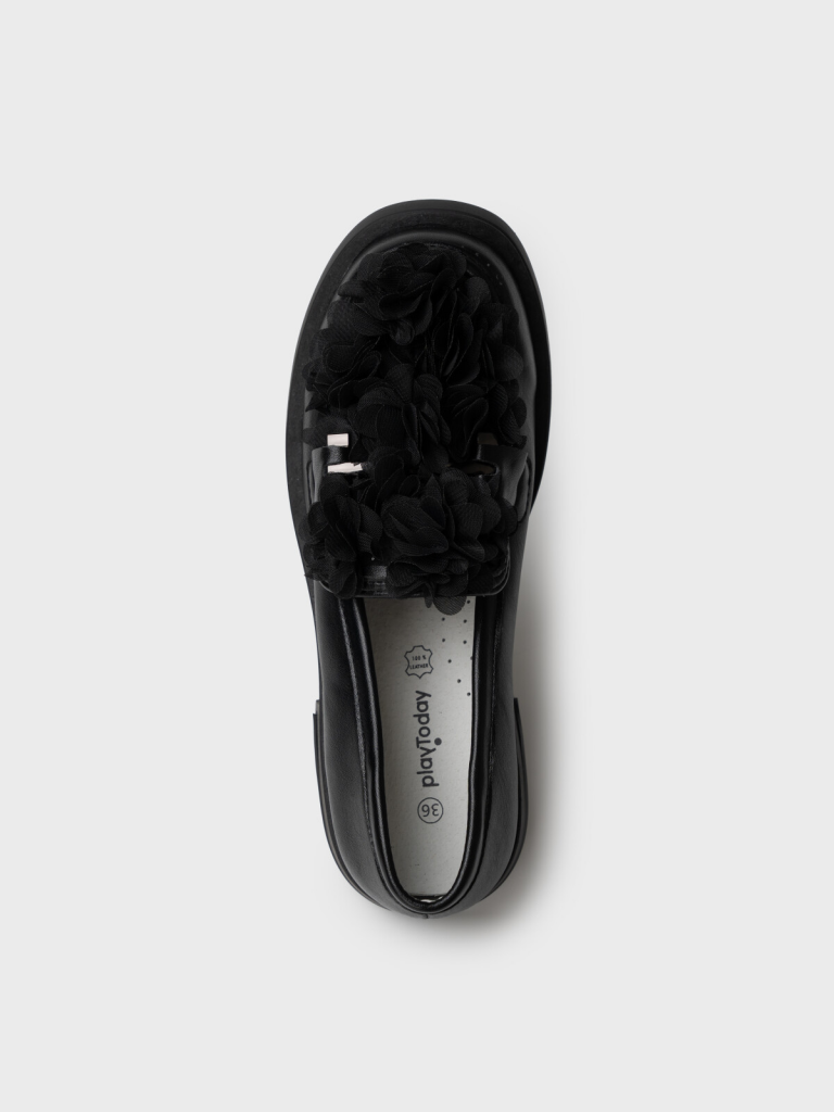 Школьные туфли для девочки подростка с оригинальным оформлением многослойными цветами из сетки. Верх обуви выполнен из искусственной кожи. Лоферы декорированы металлической фурнитурой. Подкладка и стелька - 100% натуральная кожа. Кожаная стелька с анатомическим элементом обеспечивает правильную нагрузку на стопу. Высота каблука 3 см - очень комфортная для повседневной носки. Формоустойчивый задник поддерживает стопу в правильном положении. Подошва из ТПР гибкая и обладает хорошими износостойкими свойствами. Туфли для девочки школьницы отлично подойдут как сменка в школу, для праздника, а также для прогулок: весна, лето, ранняя осень.