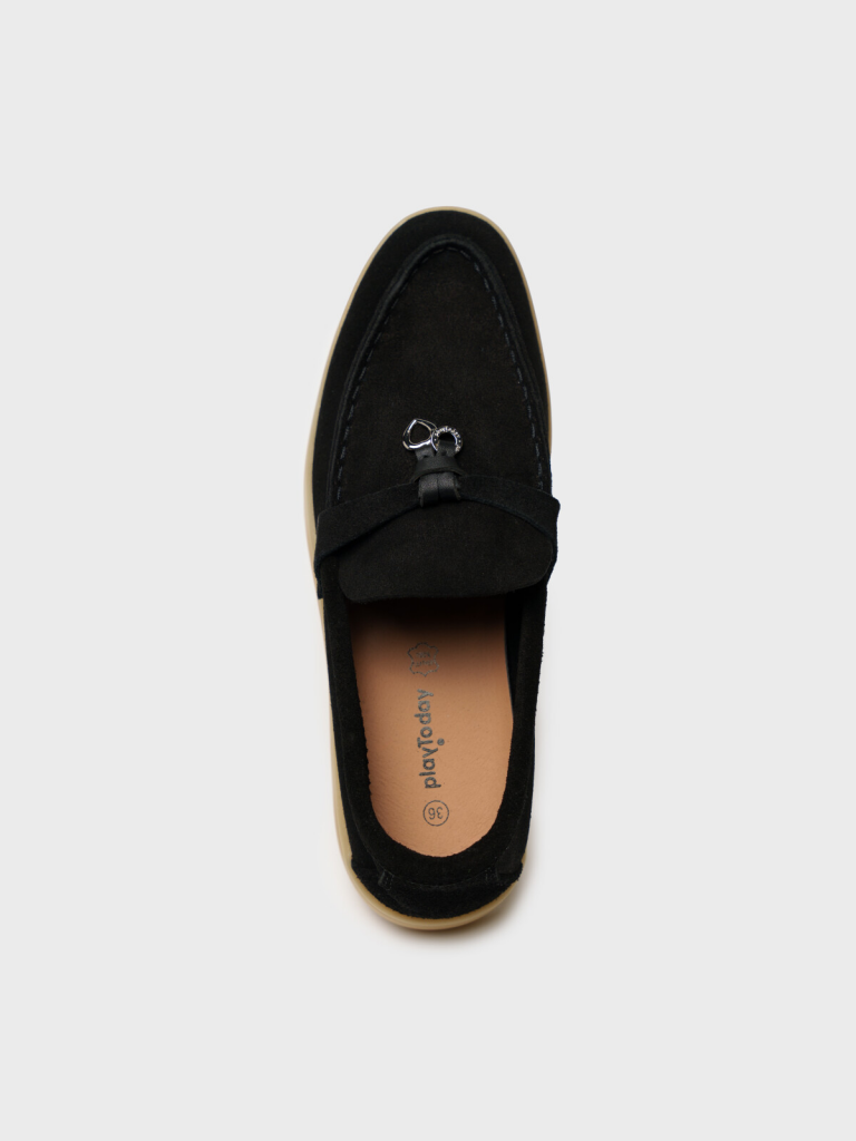 Школьные лоферы для девочки из натуральной кожи. Туфли выполнены из натуральной замши. Натуральная замша делает эти лоферы исключительно мягкими и комфортными для ношения весь день как сменная обувь в школу или для прогулки. Полуботинки легко обувать, так как конструкция не имеет дополнительных креплений на стопе. Кожаная стелька. Гибкая, не скользкая подошва из ТПР обладает хорошей износостойкостью. Эргономичная форма колодки обеспечивает правильное формирование стопы ребенка.
