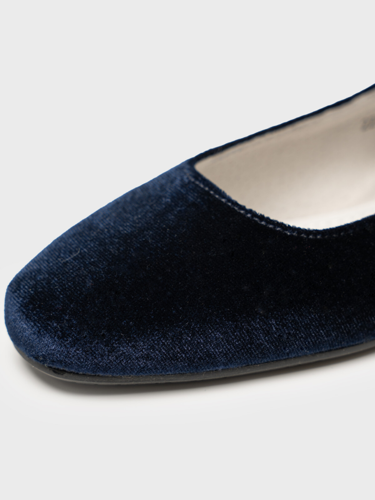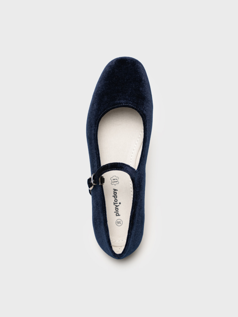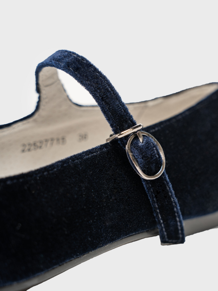 Туфли-балетки для девочки подростка выполнены из бархата. Пряжка на чересподъемном ремне крепится на резинку, поэтому туфли можно обувать не расстёгивая ремень. Достаточно один раз отрегулировать его на свой подъем. Подкладка и стелька - 100% натуральная кожа. Формоустойчивый задник поддерживает стопу в правильном положении. Подошва легкая и гибкая. Трендовые туфли для девочки школьницы отлично подойдут как сменка в школу, на 1 сентября, для праздника, а также для прогулок: весна, лето, ранняя осень.