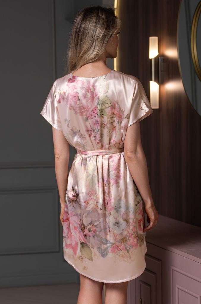 Комплект Mia-Amore выполнен из смесового принтованного шёлка. Комплект состоит из блузки с короткими рукавами и декоративной застёжкой на пуговицы и широких укороченных брюк.
