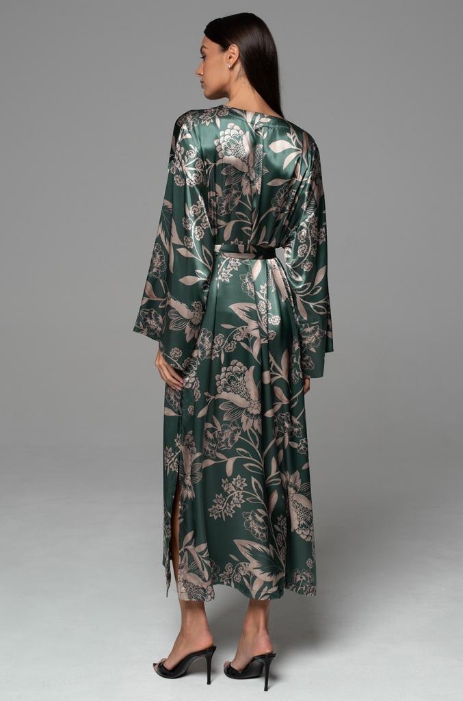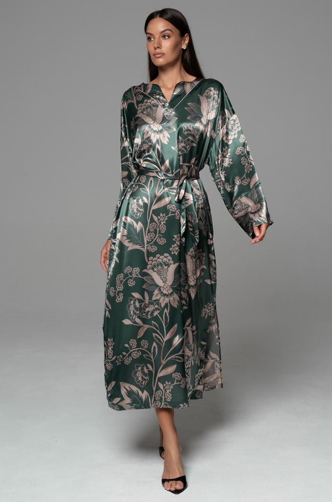 Длинная туника Mia-Amore выполнена из принтованного смесового шёлка. По талии ширина туники регулируется широким двухсторонним поясом. В боковых швах карманы.