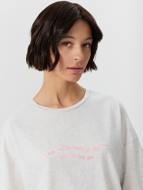 Очаровательная женская туника станет идеальным дополнением ваших домашних образов. Она прекрасно сидит по фигуре и не стесняет движений, обеспечивая максимальный комфорт. Короткие рукава со спущенной линией плеча и круглая горловина придают модели легкость. Изделие выполнено из мягкого и дышащего материала, который не сковывает движений и обеспечивает ощущение свободы. Деликатные швы абсолютно не чувствуются на коже, что добавляет дополнительное удобство. Эта туника идеально подходит для занятий домашними делами, отдыха и сна. В линейке представлены интересные базовые цвета, а широкий размерный ряд позволяет каждой женщине найти подходящий вариант. Рекомендуем!