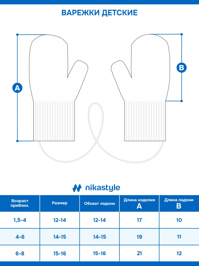 Комфортная температура эксплуатации от 0°С до -30°С. Варежки отлично сочетаются со всей верхней одеждой и другими изделиями коллекции NIKASTYLE.