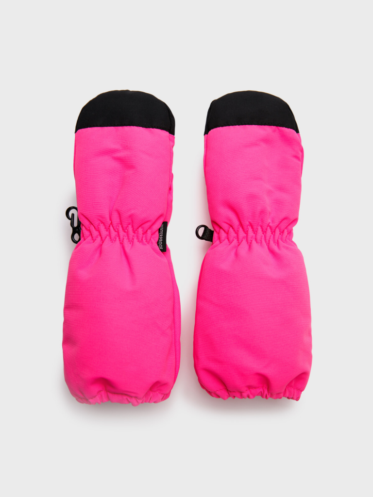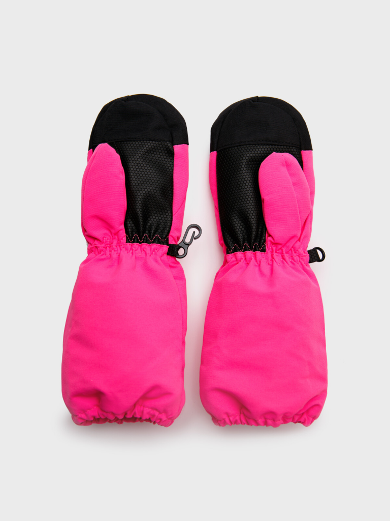 Варежки-краги детские для девочки. Утепленные варежки из мембранной ткани 5000х5000 - необходимый аксессуар для холодного времени года (осень, зима). Специальный протектор на ладонной части усиливает износостойкость изделия. Варежки имеют флисовую подкладку эластичную тесьму с карабинами, благодаря которой можно прикрепить краги друг к другу. Снегозащитная юбка. Резинка для крепления к комбинезону или к горнолужному костюму.