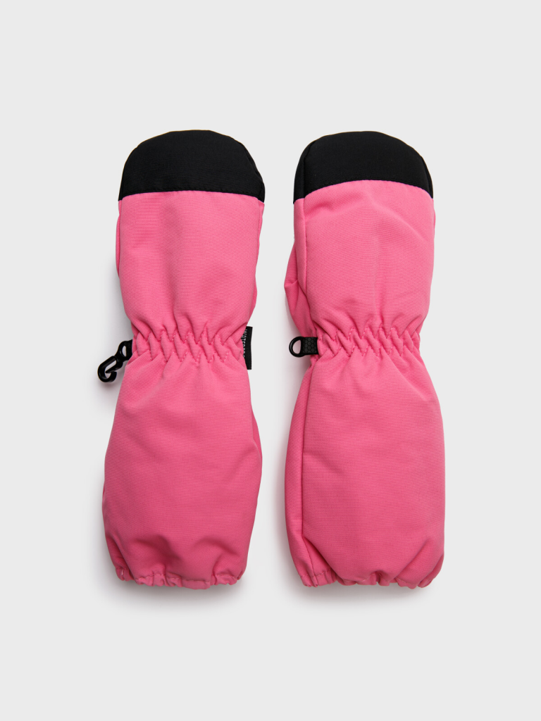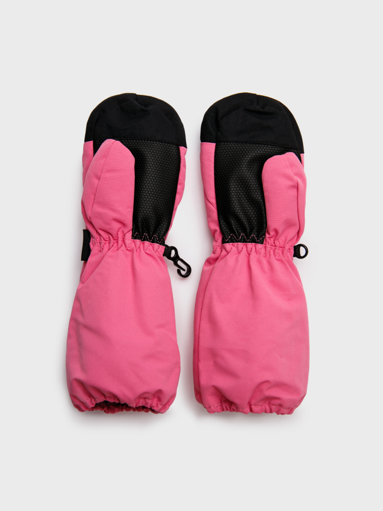 Варежки-краги детские для девочки. Утепленные варежки из мембранной ткани 5000х5000 - необходимый аксессуар для холодного времени года (осень, зима). Специальный протектор на ладонной части усиливает износостойкость изделия. Варежки имеют флисовую подкладку эластичную тесьму с карабинами, благодаря которой можно прикрепить краги друг к другу. Снегозащитная юбка. Резинка для крепления к комбинезону или к горнолужному костюму.