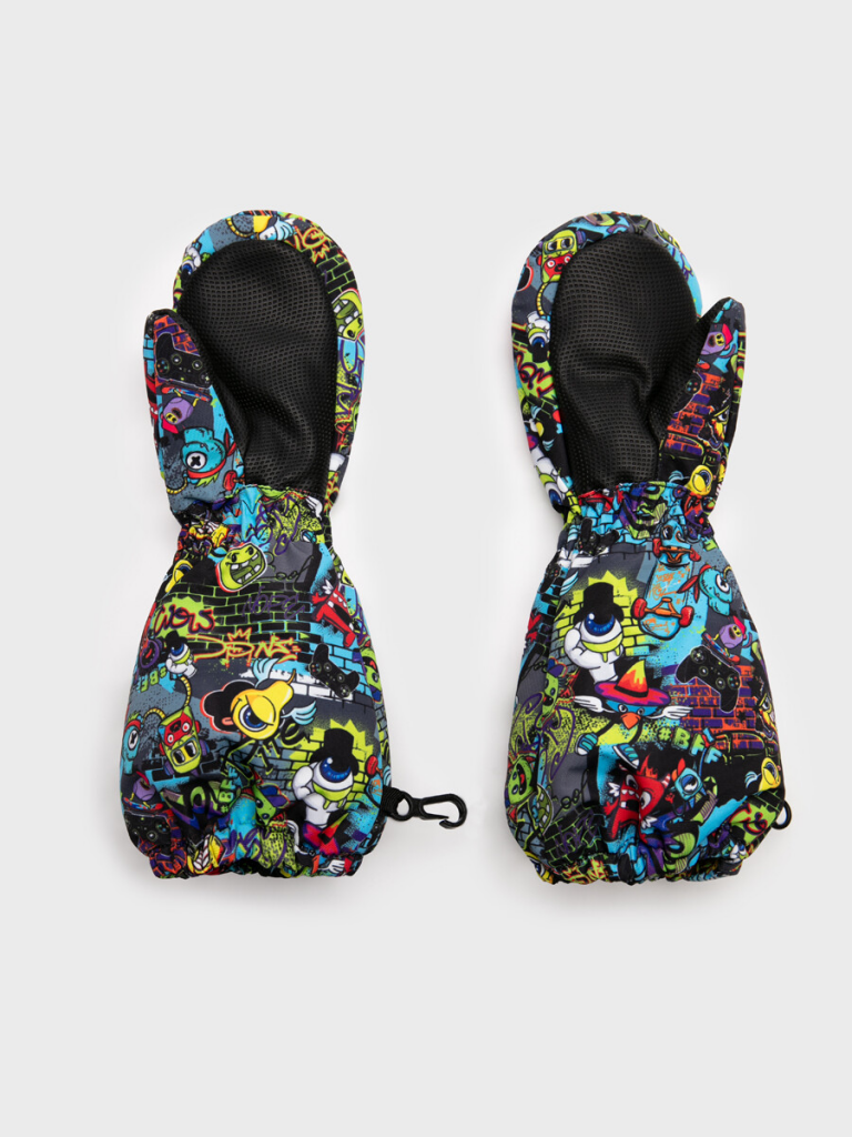 Варежки-краги детские для мальчика. Утепленные варежки из мембранной ткани 5000х5000 - необходимый аксессуар для холодного времени года (осень, зима). Специальный протектор на ладонной части усиливает износостойкость изделия. Варежки имеют флисовую подкладку эластичную тесьму с карабинами, благодаря которой можно прикрепить краги друг к другу. Снегозащитная юбка. Резинка для крепления к комбинезону или к горнолужному костюму.