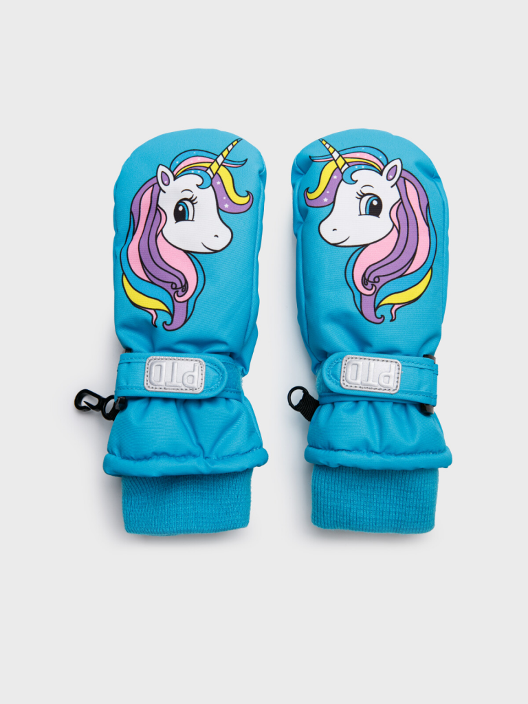 Варежки текстильные для девочек голубой,черный
