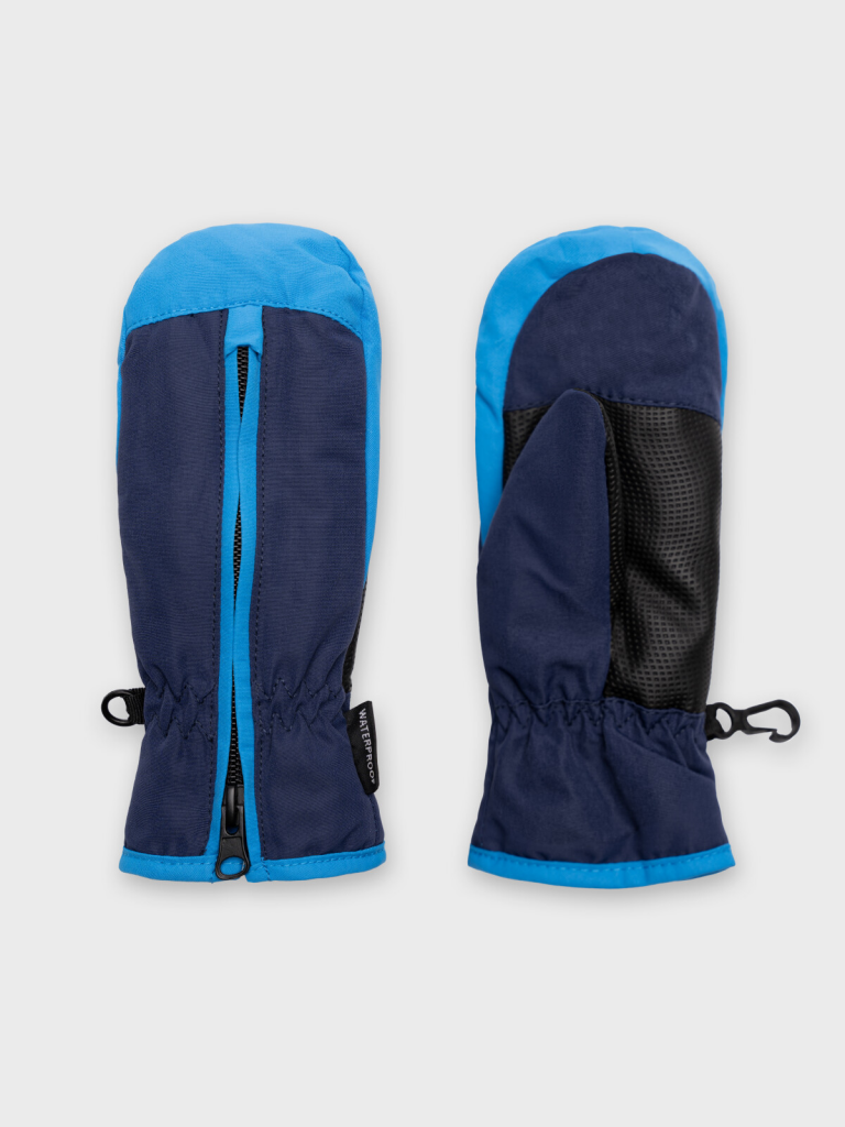 Варежки детские для мальчика. Утепленные варежки из мембранной ткани 5000х5000 - необходимый аксессуар для холодного времени года (осень, зима). Специальный протектор на ладонной части усиливает износостойкость изделия. Варежки имеют флисовую подкладку и эластичную тесьму с карабинами, благодаря которой можно крепить варежки друг к другу.Удобная застежка на молнию.